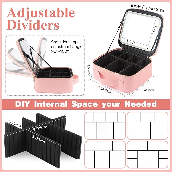 - Adjustable compartments: With 6 detachable EVA partitions and 10 brush slots, our makeup storage bag can accommodate a wide range of makeup and brush sizes to suit your combination needs.