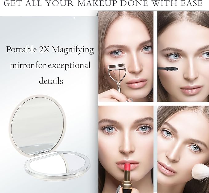 - Portable LED light small magnifying makeup mirror: palm-sized makeup mirror, more convenient than large makeup mirror, can be carried around, in the weak light to provide you with light for makeup, at the same time, magnifying effect can let you see the details.